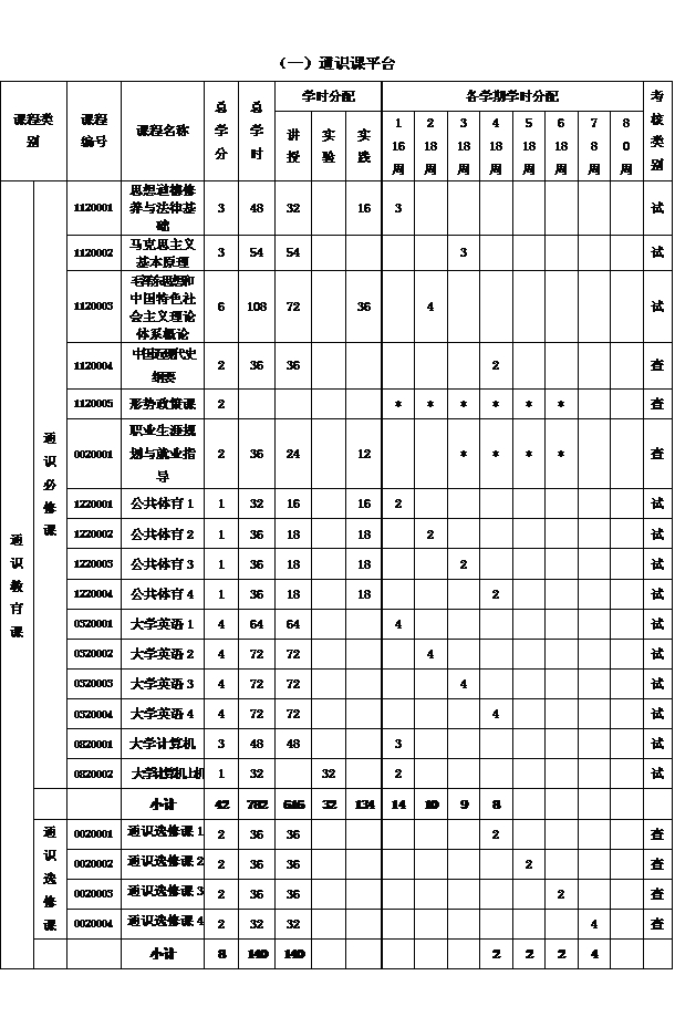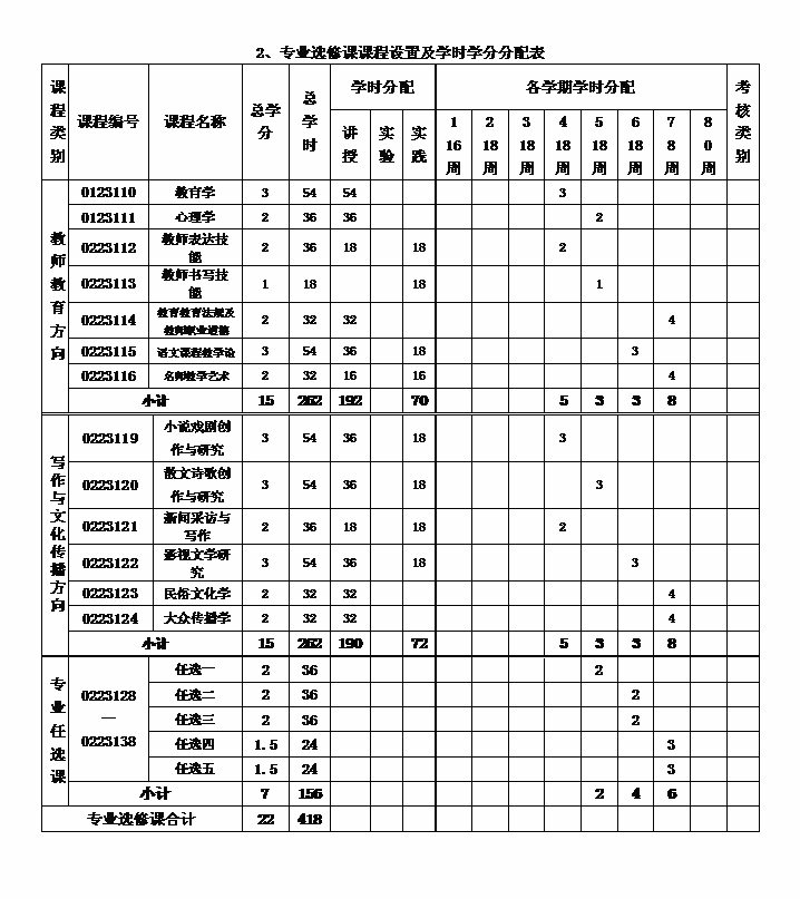 八、课程设置及学时学分分配表