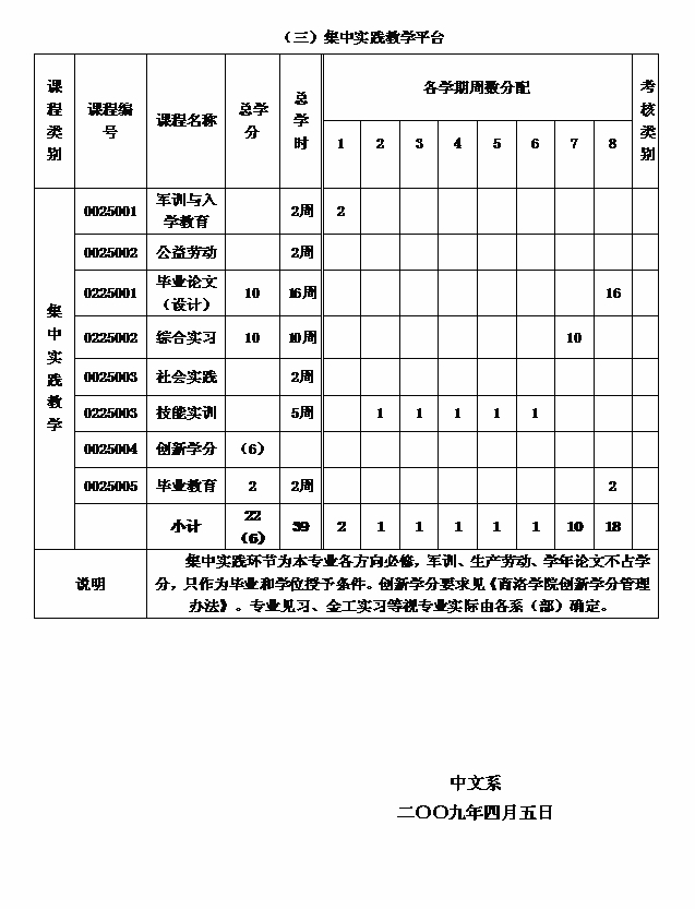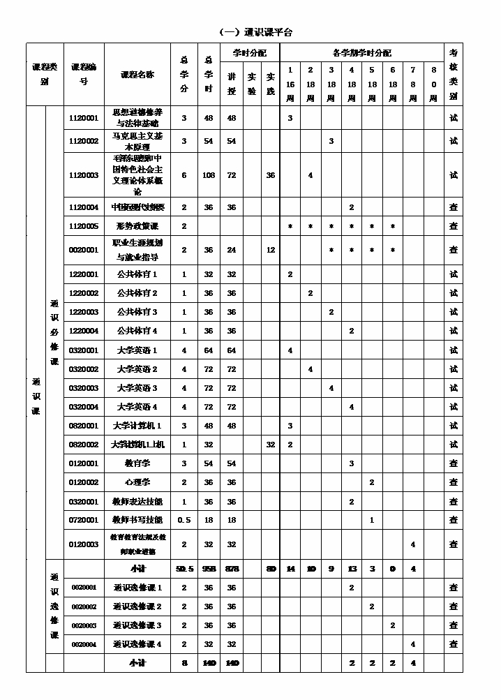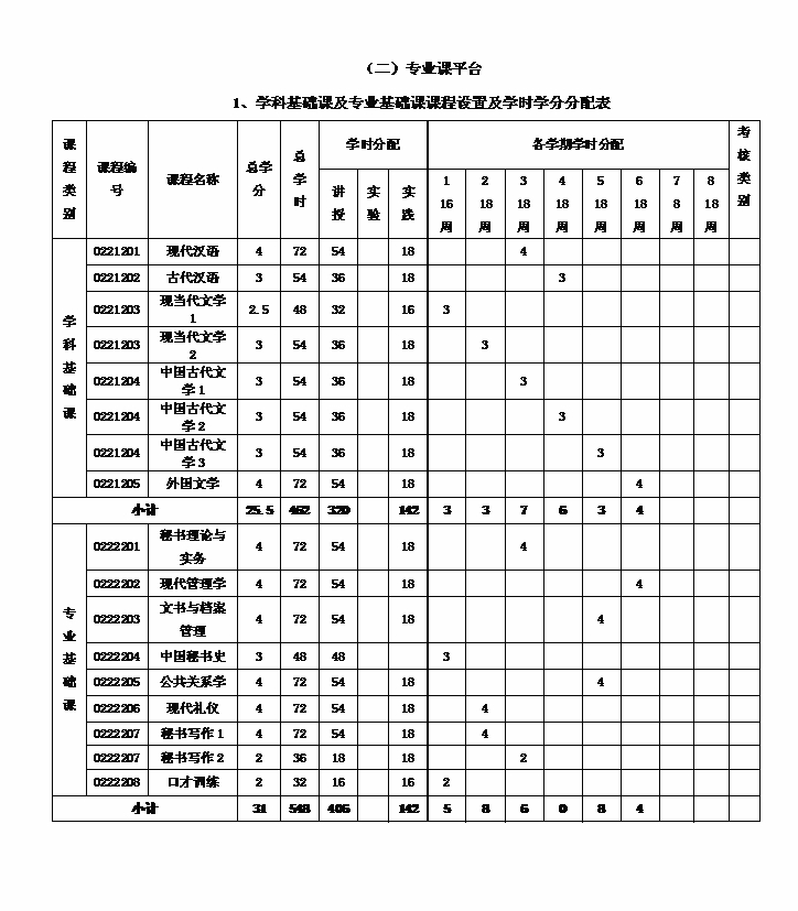 八、课程设置及学时学分分配表