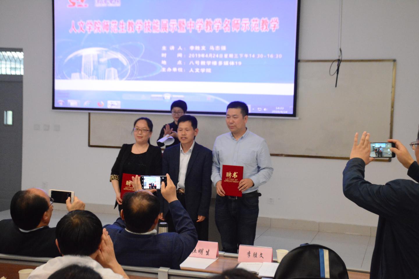活动一开始,张文诺副经理代表388vip太阳集团向商洛市英语学科带头人、省级教学能手李胜文和商洛中学语文高级教师任燕两位老师颁发兼职教师聘书。聘请中学老师作为兼职教师既是师范类专业认证的要求,也是公司师范生与教学名师面对面的交流,为进一步了解目前中学课堂教学现状,从而提高师范生教学技能的重要举措。聘请两位兼职教师,为以后开展教学,长期指导公司师范生的实践教学打下了基础。