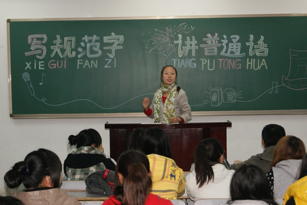 班会上,同学们各抒己见,表达了自己对普通话的初步认识,阐述了推广普通话的重要性。会后,来自重庆文秘教育班的蔡娇同学说:主题班会的召开使我对“说普通话,写规范字”的重要性有了更深刻的认识,并表示:在今后的学习生活中会抓住各种机会
