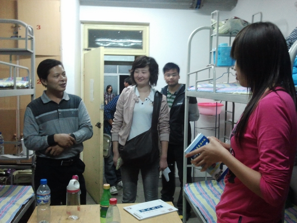 晚,我系党总支书记张彦民、系副主任刘勇、2011级辅导员黄璜及员工代表,前往公寓楼看望2011级新生,并进行了亲切的交谈。