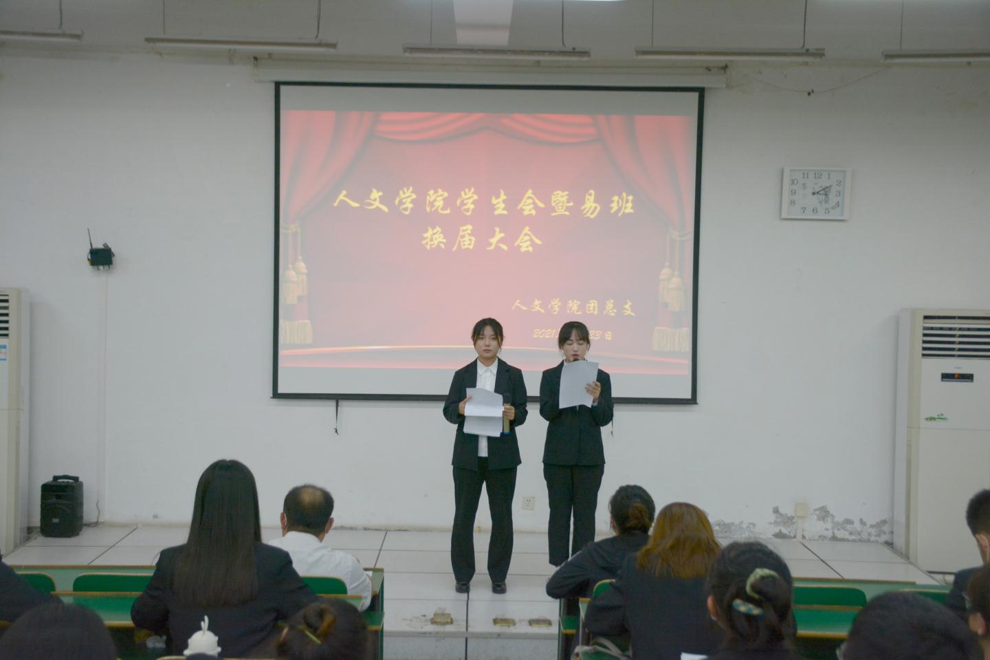 换届大会上,2020届员工会团总支副书记金嘉聪对2020届员工会一年工作进行总结。2021届团总支副书记杨麒宣读2021届员工会成员名单,2021届团总支副书记白洋丽、任新雨对各部门职责作了简单介绍。