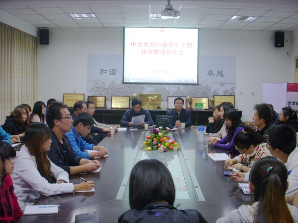 10 月20日 晚,我系在一号教学楼106会议室隆重召开2011年员工干部任命暨培训大会,系主任黄元英出席本次大会并作重要讲话,辅导员赵文英、付栋、李斌、黄璜及2010级系员工干部参加了会议。大会由系党总支书记张彦民主持。