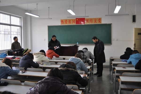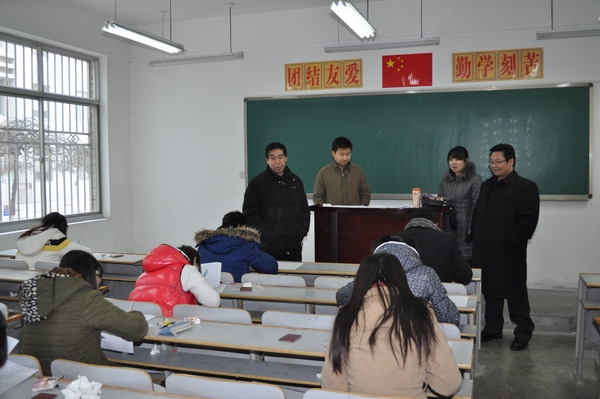 在1月5日和1月10日的期末考试中,我系主任黄元英,党总支书记张彦民,副主任刘勇、杨军深入各考场,检查员工考试情况。
