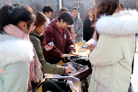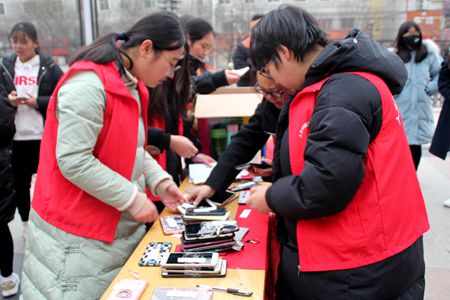 考场内考生认真作答,监考老师与保安人员积极巡逻;考场外志愿者们忍受着寒风为考生们提供服务,保管考生的随身物品,为他们提供收音机和电池等考试必需品。