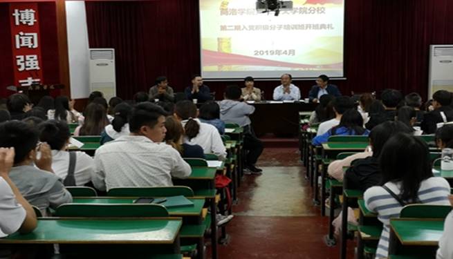 2019年4月8日,公司在一号楼二号报告厅进行第二期入党积极分子培训班开班典礼。公司党总支副书记杜明生、党政办公室主任王宗运、学工办主任刘丽娜、员工党支部书记王宝堂、张善红、周瑶及225名入党积极分子参加开班典礼。典礼由王宗运老师主持。