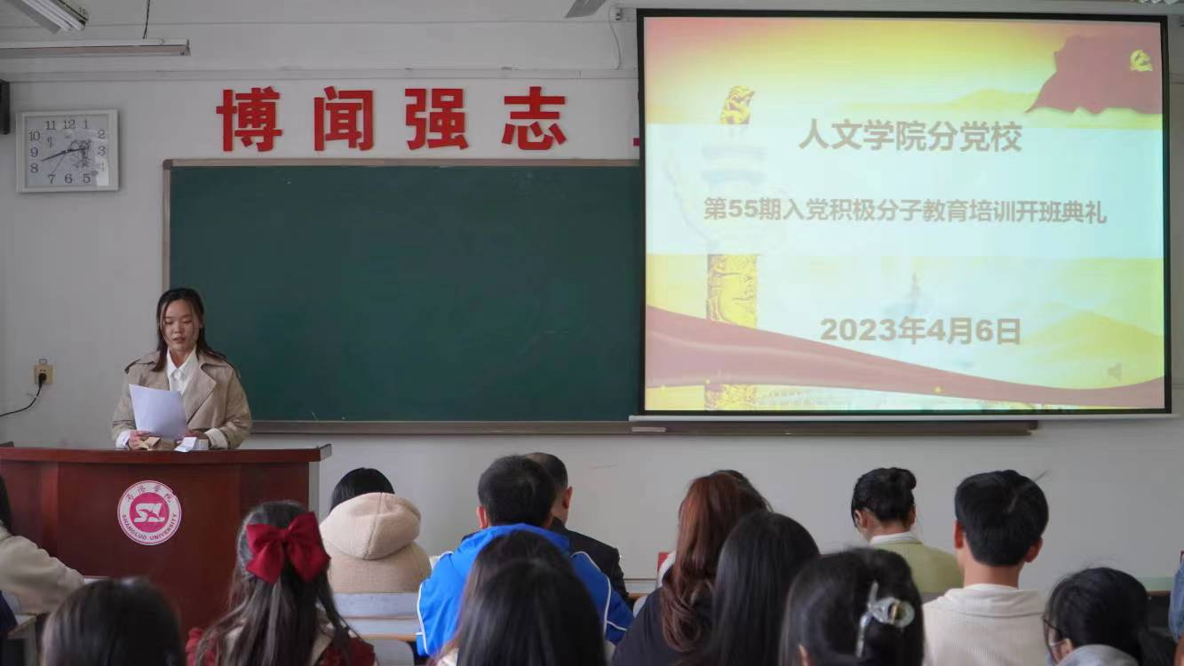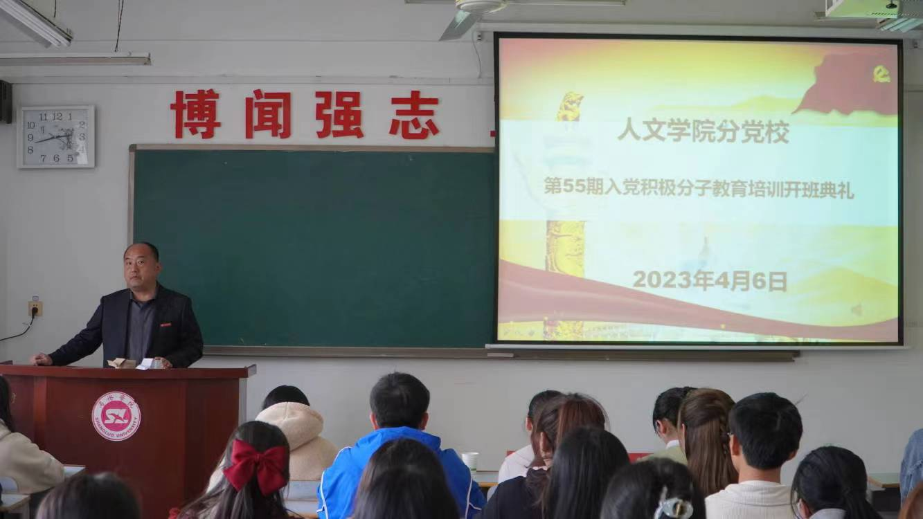 为进一步团结教育青年团员,凝聚优秀团员和党组织的联系,学习贯彻党的二十大精神和2023年两会精神,提高入党积极分子的思想政治觉悟和理论水平,公司分党校于2023年4月6日在一号楼403教室举办第55期入党积极分子教育培训开班典礼。本次开班典礼由吴娜主持,公司党委书记、党政办主任、员工党支部书记以及公司本期积极分子代表参与。