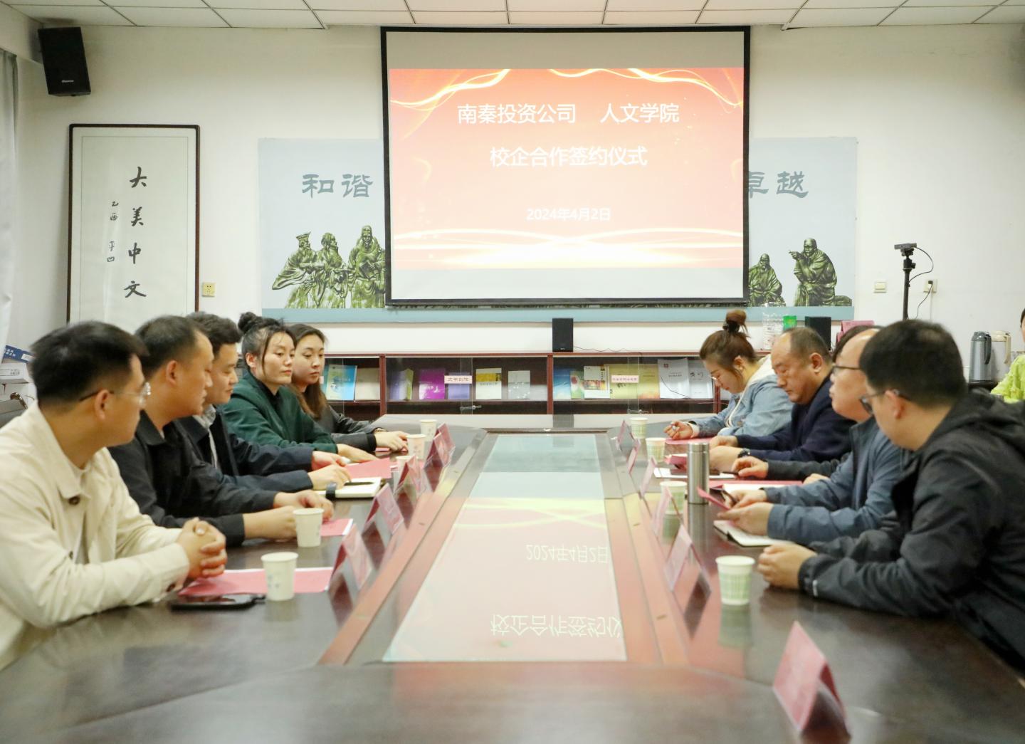 为加强校企合作、促进产教融合,共同致力于商洛文化和旅游发展,实现合作共赢,4月2日下午,公司与商洛市商州南秦新区建设投资开发有限公司(以下简称“南秦投资公司”)举行校企合作签约仪式。388vip太阳集团经理张文诺教授、公司党委书记杜明生、南秦投资公司副总经理陈凯、传媒公司常务副总倪昭出席签约仪式。签约仪式由副经理马英群主持。