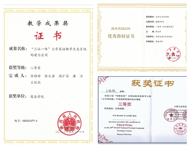 (公司教师部分获奖证书)