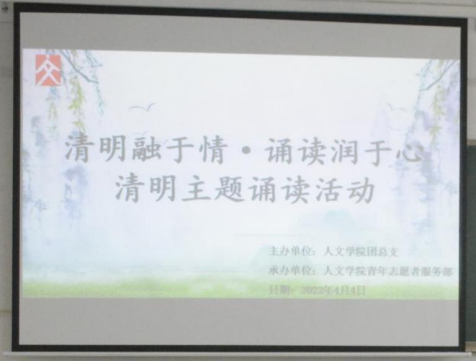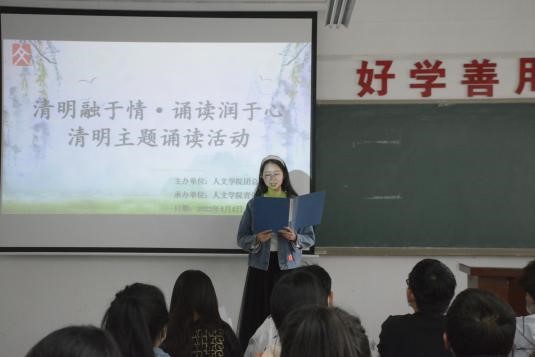 “梨花风起清明时,追思忆远寄情思。”清明节是我国传统的重大春祭节日,扫墓祭祀、缅怀祖先,是中华民族自古以来的优良传统。在清明节到来之际,为缅怀革命先烈,弘扬中华传统文化,增强伟大爱国精神,2022年4月4日上午,388vip太阳集团采用线上+线下的方式面向全体人文学子开展了“清明融于情·诵读润于心”清明主题诵读活动。