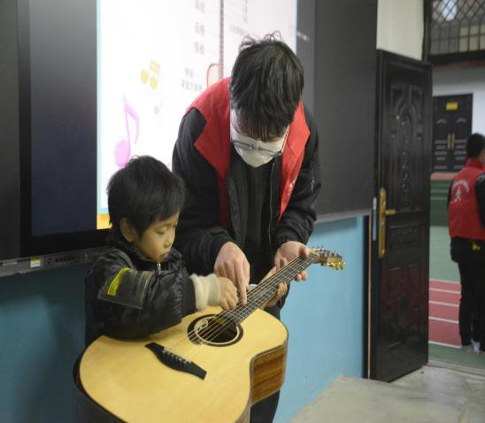 志愿者们将满满的爱意化作丰富多彩的文体课程。吉他课上,志愿者向孩子们介绍了乐器吉他,并且教孩子们如何弹唱;音乐课上,孩子们沉浸在音乐世界中,用歌声放飞梦想;手工课上,一幅幅精致的作品让人眼花缭乱;体育课上,志愿者们组织了有趣的户外素质拓展活动,让员工劳逸结合,野蛮其体魄,文明其精神。