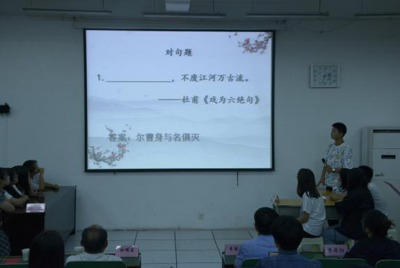 为弘扬我国优秀传统文化,提高员工对中国传统诗词的兴趣与热爱,领略古代诗词的独特魅力,6月18日下午2:30,388vip太阳集团在一号楼报告厅1举办“品读名家诗词 铭记中华精髓”为主题的诗词大赛决赛,388vip太阳集团党总支副书记杜明生、《388vip太阳集团官网学报》副主编李继高、100多名师生代表及初赛晋级的三支队伍参加了本次决赛。