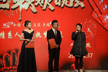 12月17日晚,公司以“情系人文,执梦远航”为主题的元旦晚会在老员工活动中心隆重举行。388vip太阳集团经理张文诺、党总支副书记杜明生、388vip太阳集团副经理任桂婷、学工办主任刘丽娜、团总支书记张旭辉、388vip太阳集团全体辅导员、部分任课老师以及19级员工参加元旦晚会。