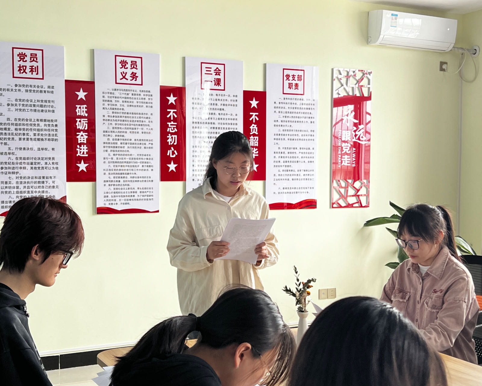 学习交流会上, 由唐楠楠、韩雨馨同学带领大家共同学习了《习近平谈治国理政第四卷》中有关推进社会主义文化强国建设的报告,积极分子分享了学习的感悟。通过本次活动,大家意识到作为新时代青年,我们应担负起新时代文化建设的新使命,落实好文化强国建设的新任务,深入践行社会主义核心价值观,创造中华民族现代文明,再谱中华文明新篇章。