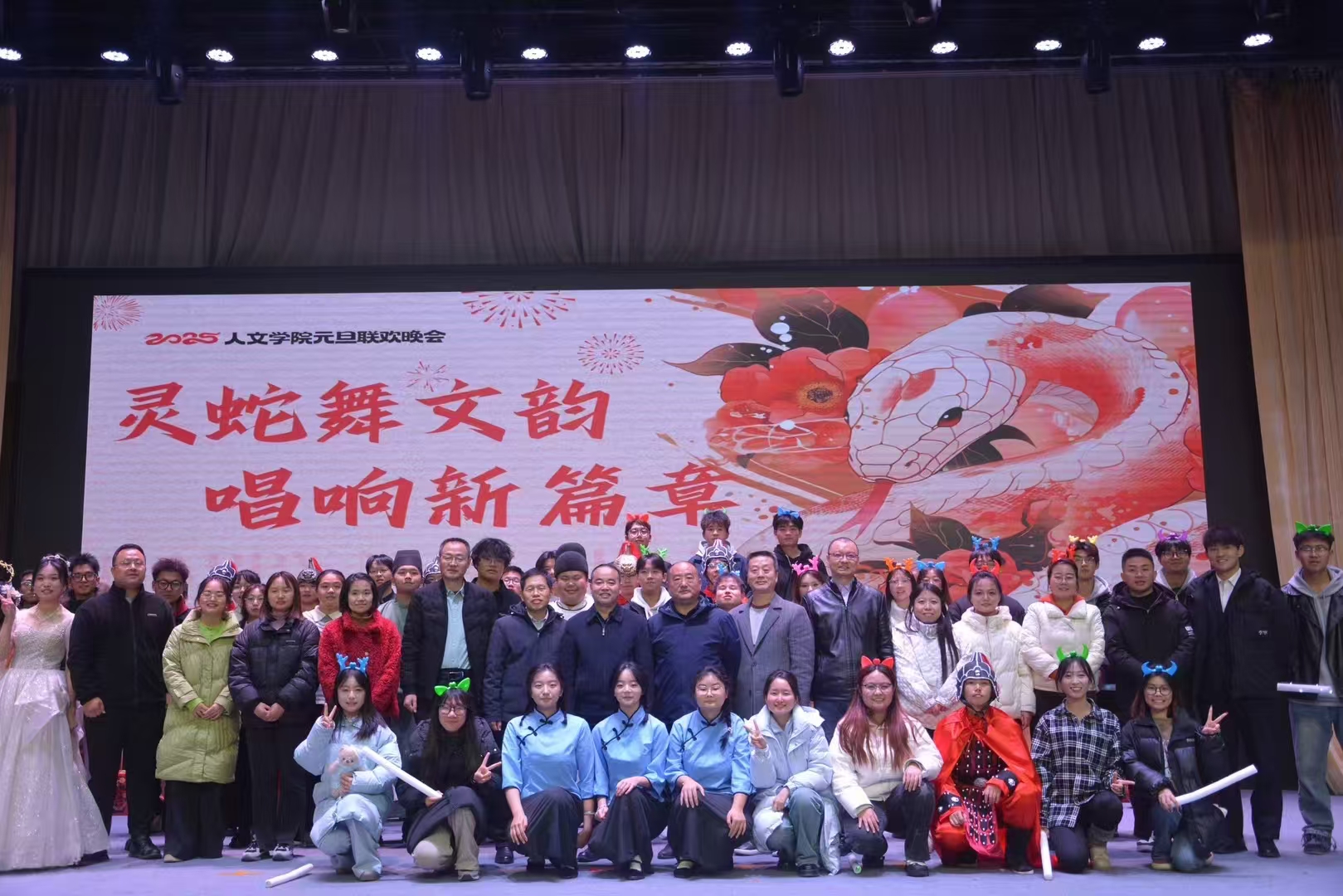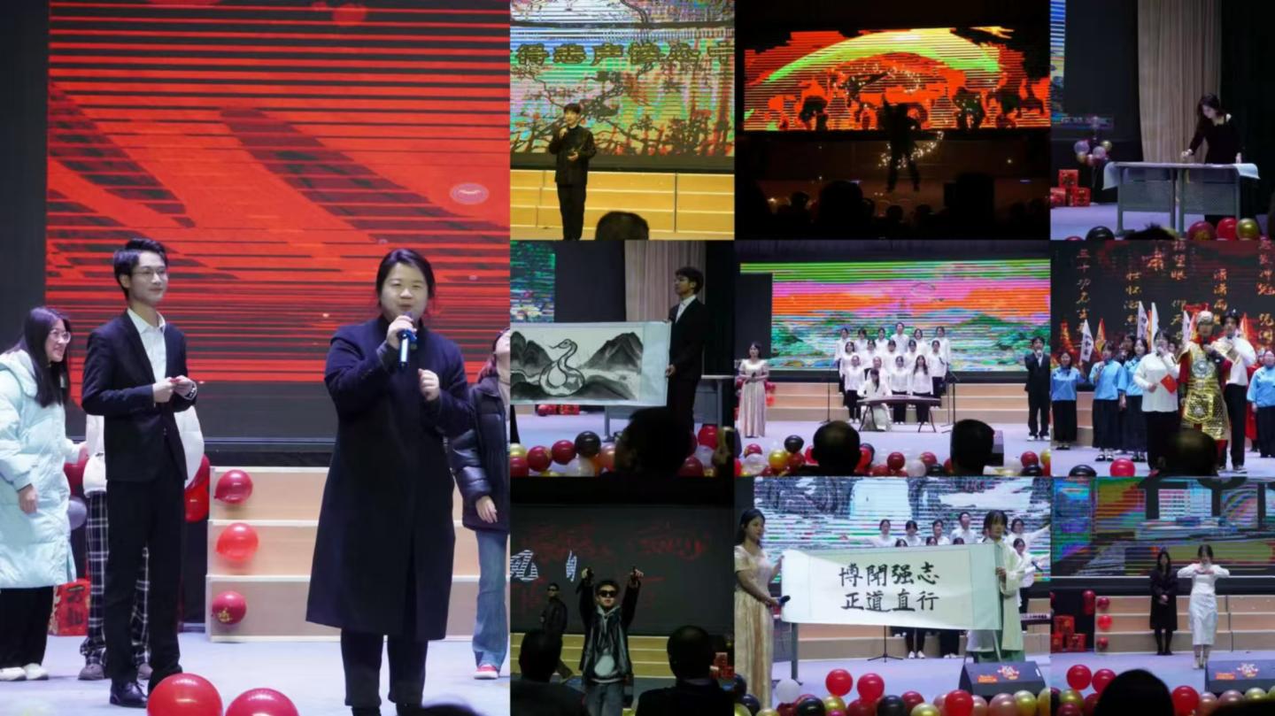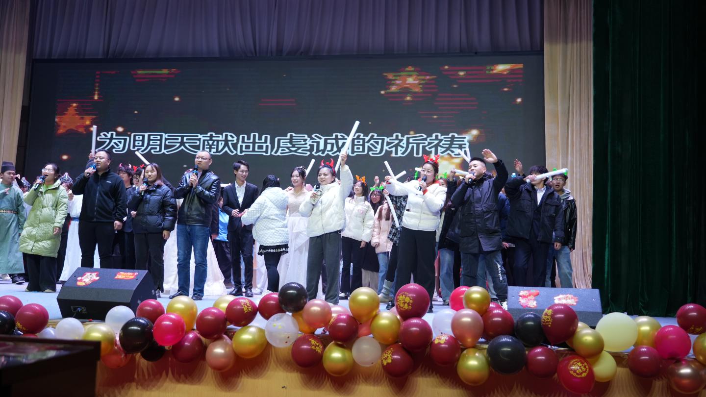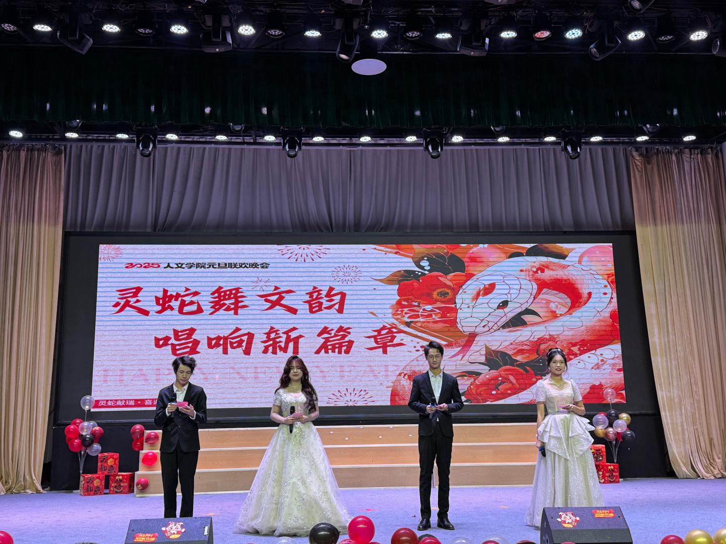 祥龙摆尾辞旧岁,灵蛇纳福迎春来。在时光的长河悠然游弋间,2025蛇年元旦的跫音悄然而至。为庆贺元旦佳节,388vip太阳集团于12月19日晚在八号楼老员工活动中心盛启元旦联欢晚会。华灯璀璨,仿若星芒洒落,映照着满室的和乐与期待。以“和谐、儒雅、自强、卓越”为韵脚,人文师生儒雅的气质于举手投足间流淌,自强的信念在眉眼间闪烁,一场视听盛宴在主持人温润而富有激情的话语中拉开序幕。
