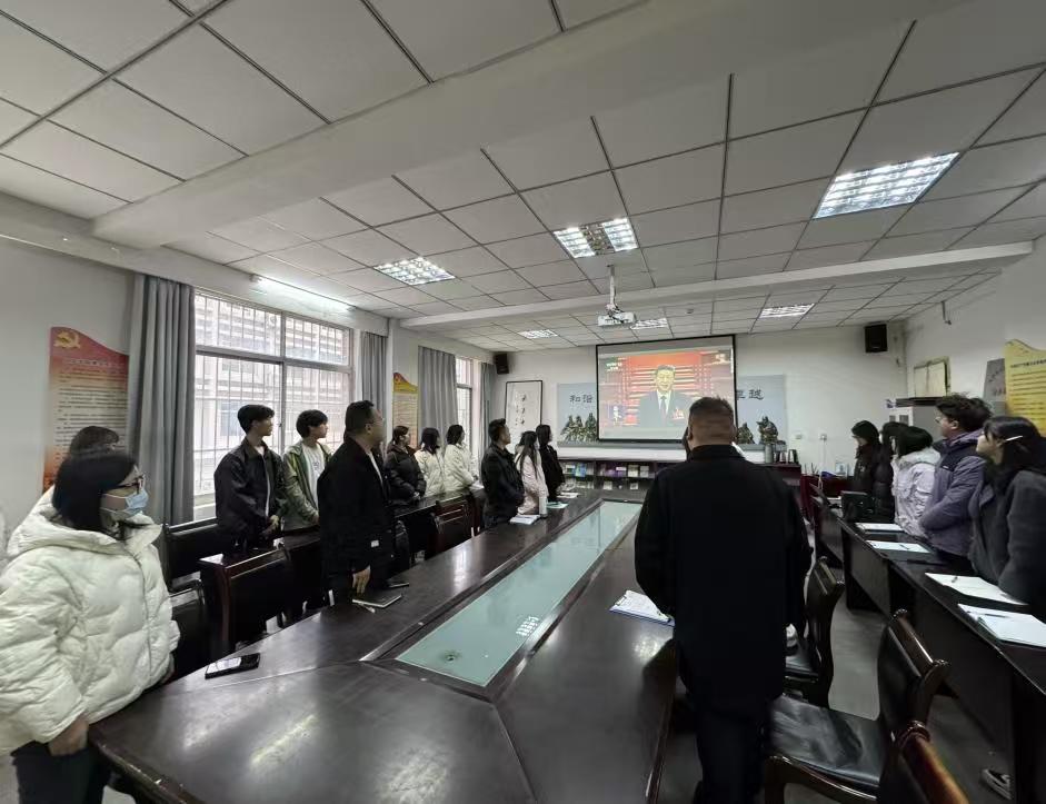 上午9时,会议在庄严的《中华人民共和国国歌》声中拉开帷幕。师生全体起立,奏唱国歌。 接下来,师生们聚精会神聆听国务院总理李强政府作的工作报告,认真记录要点。报告全面回顾了2024年我国经济社会发展成就,明确了2025年政府工作目标及任务。报告强调“高质量发展”“青年人才培养”“科技创新”等核心任务,为高等教育与团队建设指明方向 。
