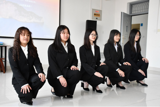 在蹲姿训练中同学们落落大方,即使蹲下也不失秘书人的风采。