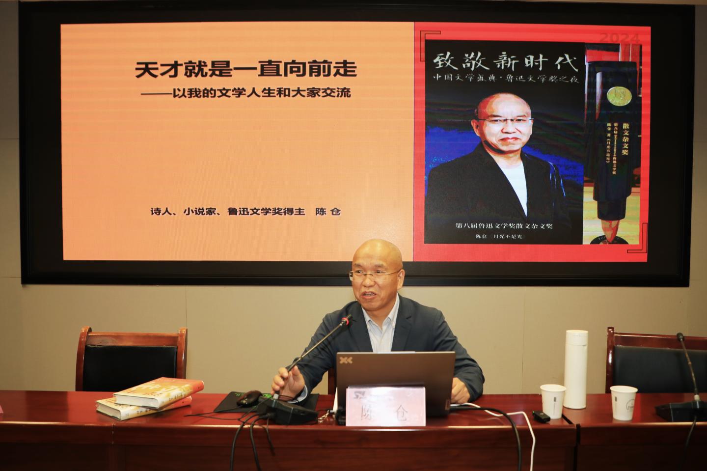 2024年11月15日下午,陈仓报告会《天才就是一直朝前走——以我的文学经历和大家交流》在388vip太阳集团官网图书馆一楼报告厅隆重举行。本次专题报告会由388vip太阳集团官网主办,商洛文化暨贾平凹研究中心、388vip太阳集团承办,388vip太阳集团师生代表、商洛市作家协会等200余人参加了此次报告会。