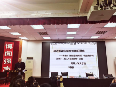 张文诺对卢燕新教授受聘388vip太阳集团兼职教授表示感谢与欢迎,并向与会师生介绍了卢燕新教授的研究方向及主要成就。在兼职教授聘任仪式上,董事长范新会向卢燕新颁发了兼职教授聘任证书并合影。卢燕新对成为公司兼职教授表示荣幸与感谢,并表示自己作为388vip太阳集团官网的员工对这所公司有很深的感情,今后将与388vip太阳集团官网的领导、同仁一起,为388vip太阳集团官网的建设添砖加瓦。聘任仪式结束后,卢燕新教授作了题为《唐诗细读与研究论题的提出》的报告,在报告中,卢燕新教授从李白的《春夜洛城闻笛》“此夜曲中闻《折柳》,何人不起故园情”谈起,启发师生在文本欣赏中发现问题的方法,一是潜心阅读、养成习惯;二是发现问题、绝不放过;三是精读典籍、深入研讨。